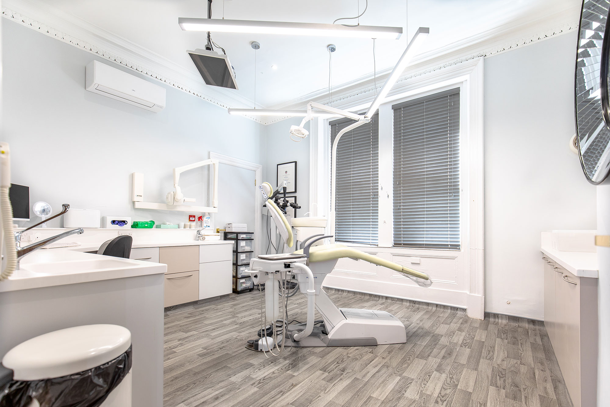 This substantial refurbishment delivered two new look surgeries, complete with high-end Belmont chairs, and a state-of-the-art conference area. Extensive structural and aesthetic work featuring superb premium details worked in harmony to create a head-turning practice with a sumptuous patient experience.