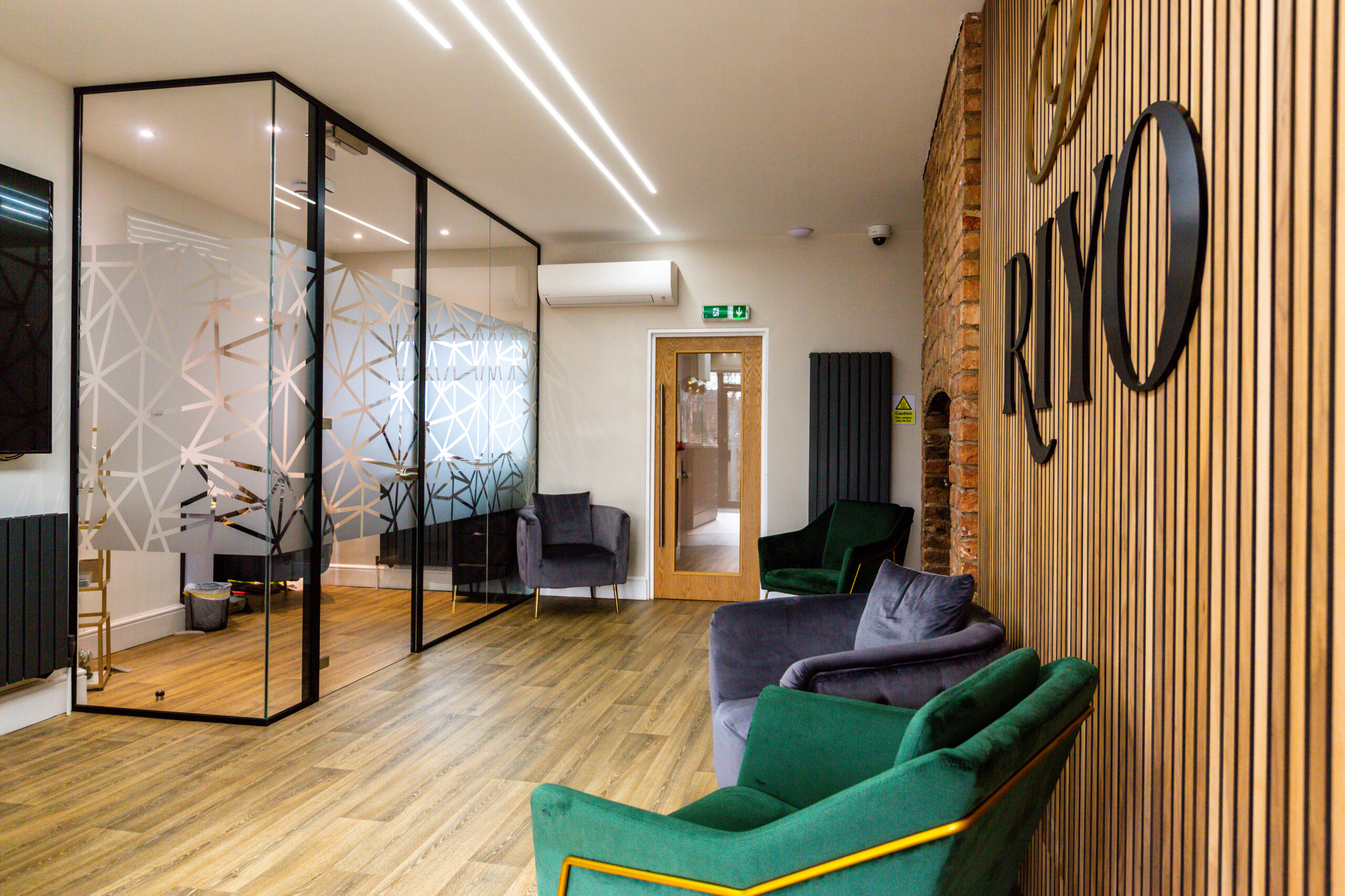 Glazed rooms and a stunning, curved, bespoke reception desk created and installed by HiSpace were just top-notes of this elite project, and the light filled front area provides a welcoming for patients. Attention to the details such as the concrete effect vinyl floor and hanging pendant lights have drawn praise from many of the old customer base.